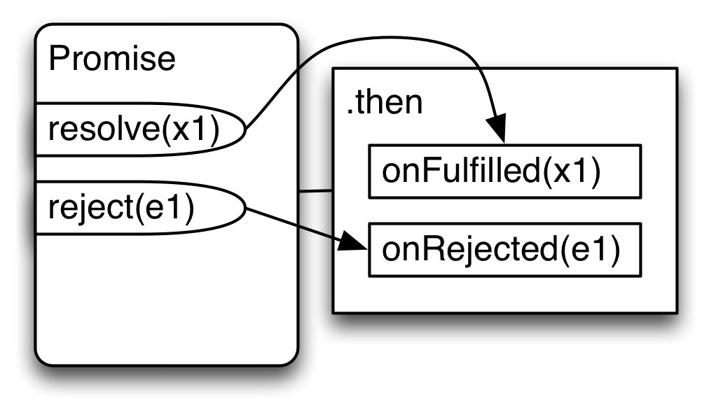 Promise.prototype.catch(onRejected) p.catch(onRejected) ist dasselbe wie p.then(null, onRejected).[1] „Promises/A+“, herausgegeben von Brian Cavalier und Domenic Denicola (der De-facto-Standard für JavaScript Promises).