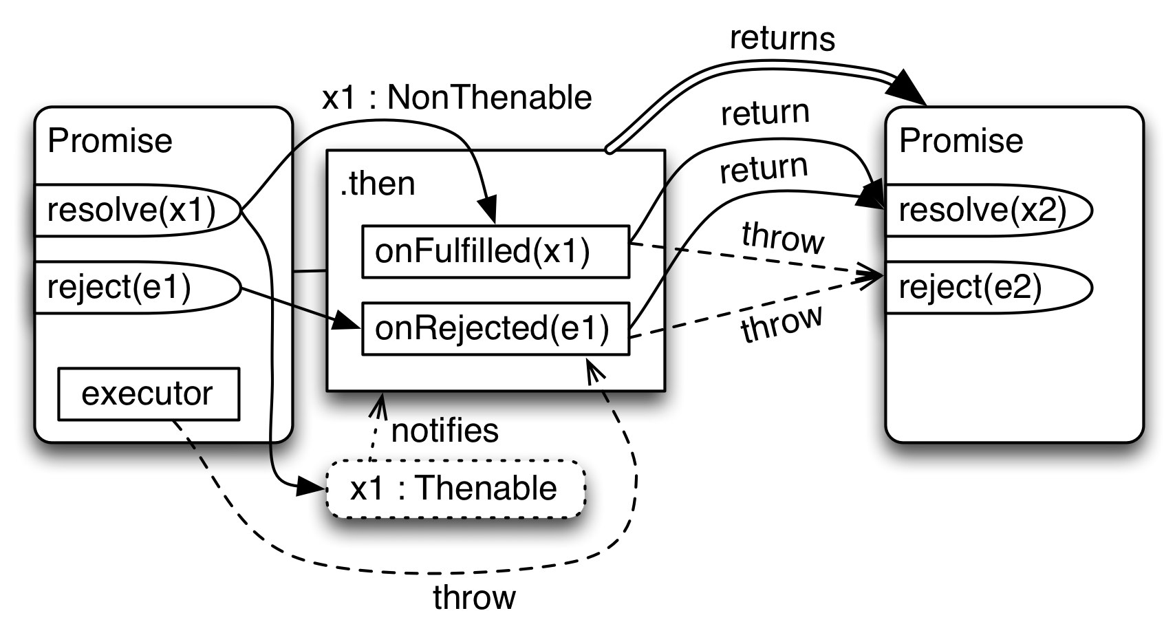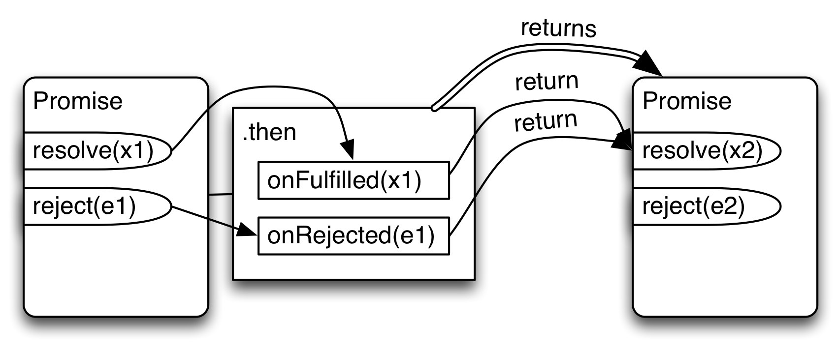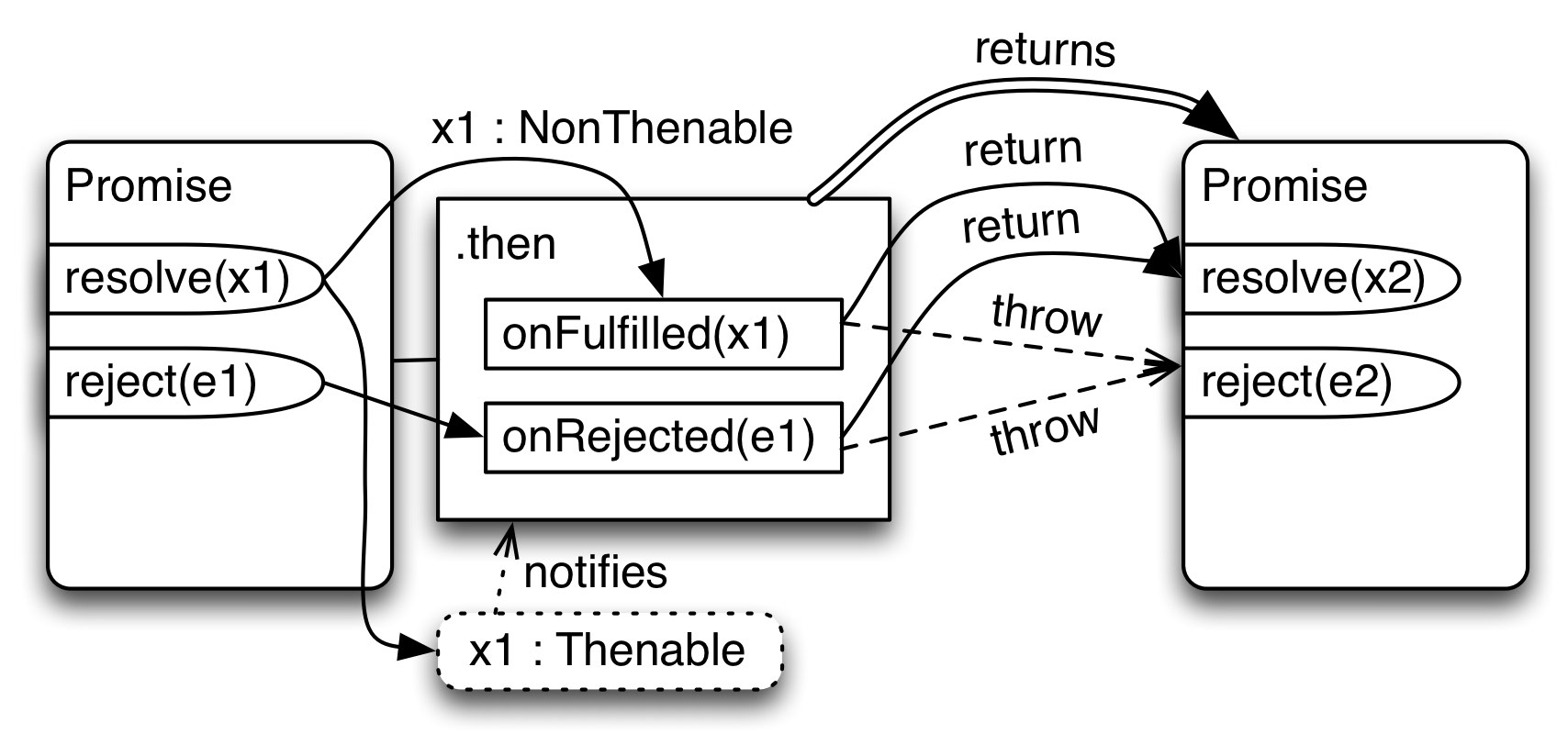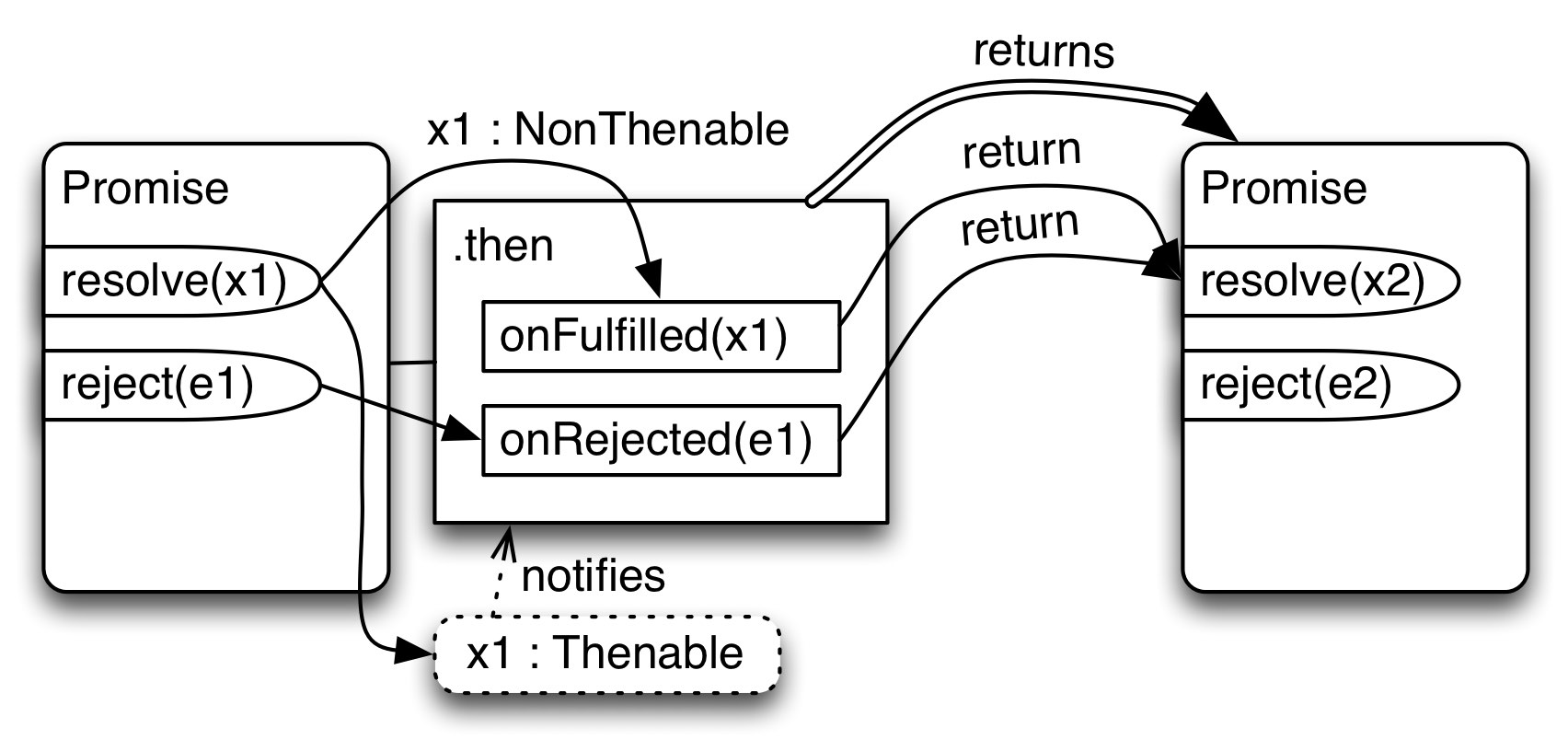 Mit der Verkettung werden die Zustände von Promises komplexer (wie in Abschnitt 25.4 der ECMAScript 6 Spezifikation beschrieben).