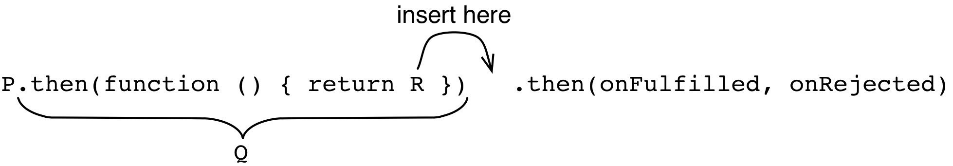 Die Abflachung erfolgt in Zeile A: Wenn value erfüllt ist, wollen wir, dass self erfüllt wird, und wenn value abgelehnt ist, wollen wir, dass self abgelehnt wird. Die Weiterleitung erfolgt über die privaten Methoden _doResolve und _doReject, um die Absicherung über alreadyResolved zu umgehen.