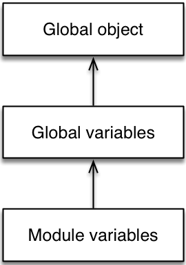 var-Deklarationenlet-Deklarationenconst-DeklarationenBeachten Sie, dass die Körper von Modulen nicht im globalen Geltungsbereich ausgeführt werden, sondern nur Skripte. Daher bilden die Umgebungen für verschiedene Variablen die folgende Kette.